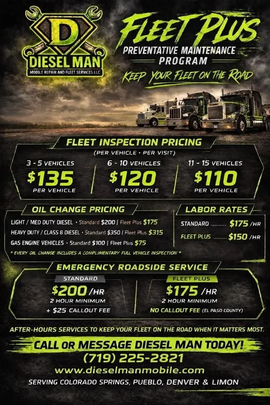 Our Fleet Plus Program helps businesses manage their fleet maintenance, inspections, and repairs without the hassle of sending vehicles to the shop. We also offer AFTER HOURS SERVICES that way your fleet is on the road when it needs to be!